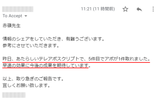 その結果、新規TELアポで企業保険年払い170万円の高額契約ができました。