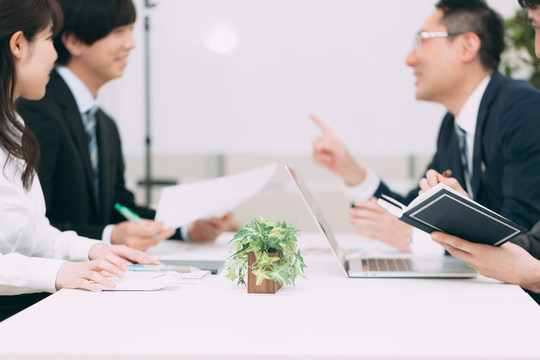 会議では「一番遠くの人まで届く声で」「ゆっくり、はっきり」話しましょう。1対1の応接室なら小さな声で構いませんが、10人以上が集まる会議室で蚊の鳴くような声では意見が通りません。「声の大きい人の意見が通る」とは、よく言ったものです。