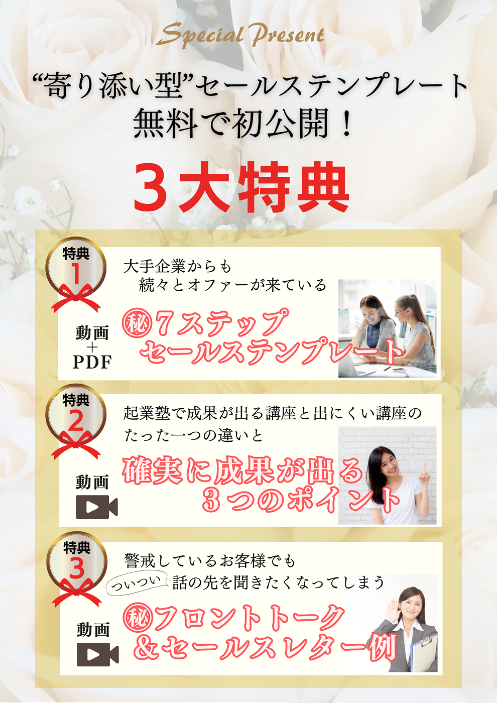 私自身がセールスされるのがとっても嫌だったので、お客様にセールスすると嫌われると思っていました。それが、本当のセールスとは、「お客様に押し売りすることではない」と具体的に教えてもらったことで、ずっと抱えていたセールスに対するマインドブロックが消えて行きました。マインドが切り替わり、正しい手順を知ると、お客様に商品をご提案するのがこんなに楽しくなるものなんですね!